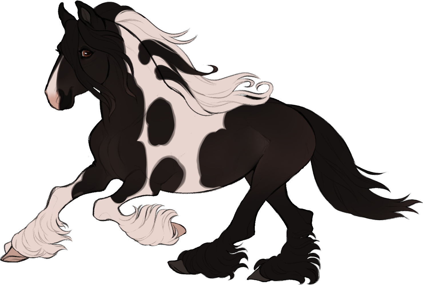 Smoky Black Tobiano (Carries Pangare, Sooty, Teddy-Eared, Lavender)