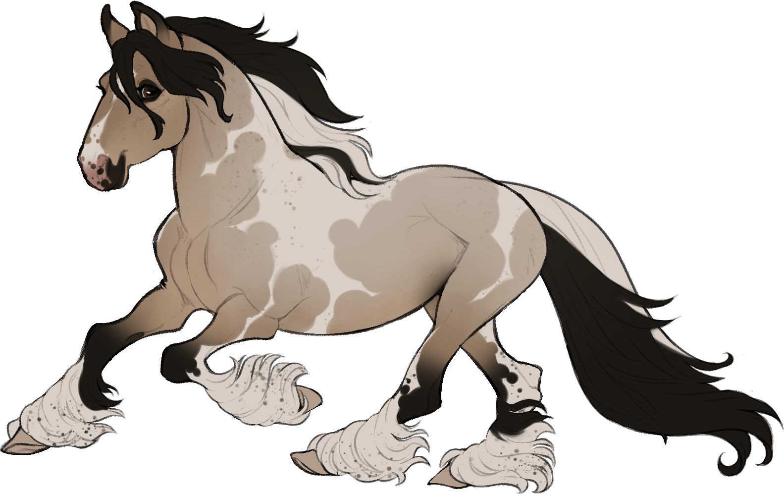 Ticked Buckskin Roan Tobiano (Carries Teddy-Eared, Lavender)
