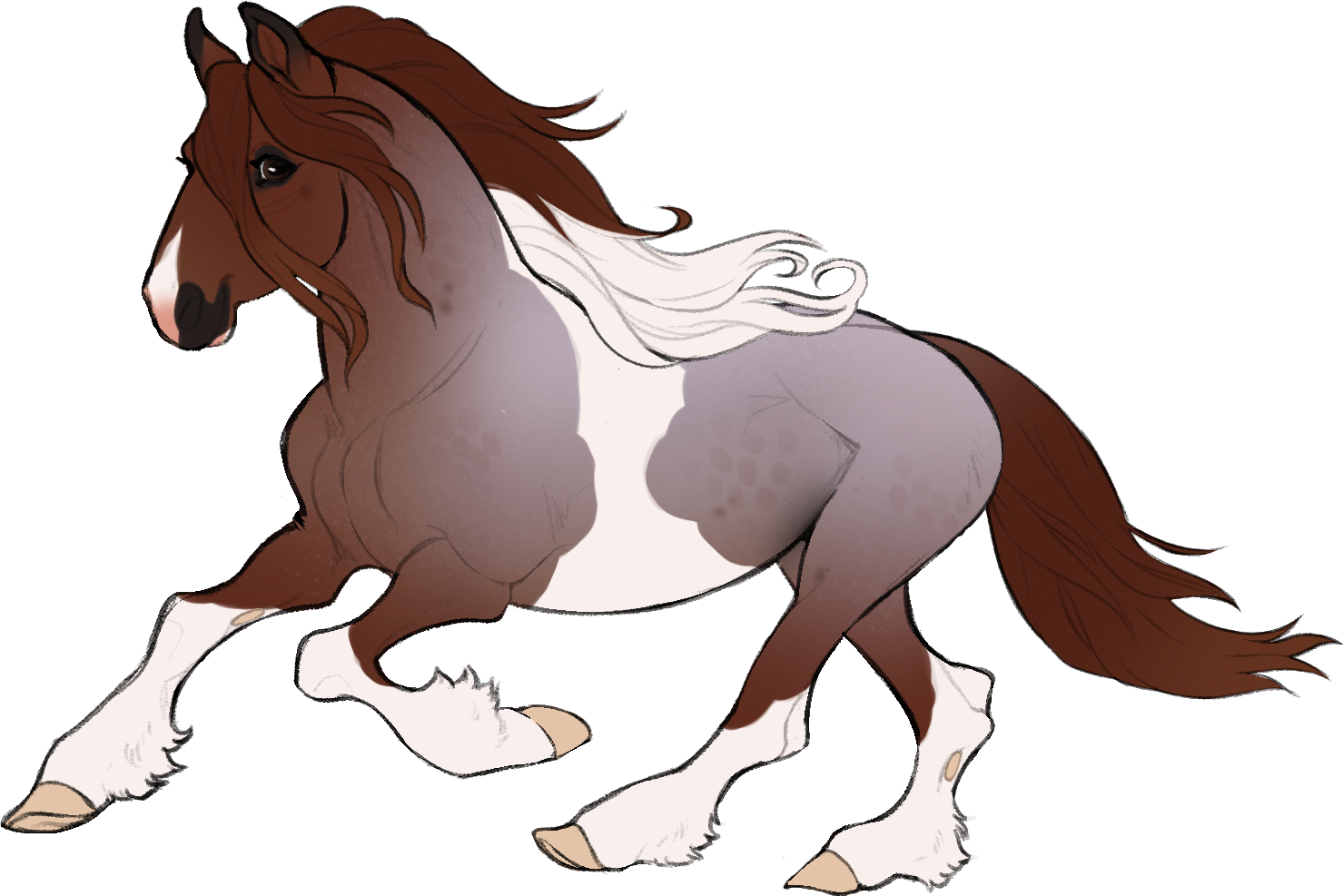 ⋆ thin braid in his mane and tail, decorated with pearls and feathers