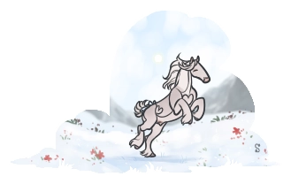 A pale blur floated past the same kitchen window you were standing at now. Startled and confused, you walked outside to see what it was. Before you was a pale, snow colored pony with beautiful blue eyes the color of the sky. Its mouth, stuffed full of the fruit you had just brought back from town. Quietly, as to not scare the creature, you slip around it to try and gauge its friendliness. It hears you and looks up, juice dripping off its chin-- it snorts, its ears up, inquisitive, not scared. It takes a cautious step towards you and extends its nose to meet your now outstretched hand and presses its nose to you. You scratch its muzzle. And thats how you ended up with Ranch.