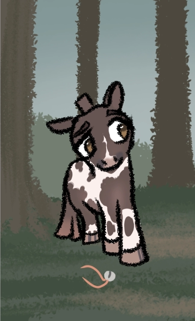 So it is not a surprise that she clambered i to his old truck, dragging along said uncle, always muttering something under his breath, with a bag of carrots, apples and what not, being sure not to forget the usual bell in her hand for good luck. It was a ways a drive away, as always, but they were at their usual spot in what felt like hours. Maybe it's because it has been so long, but the road seemed bumper and the trees more grown.