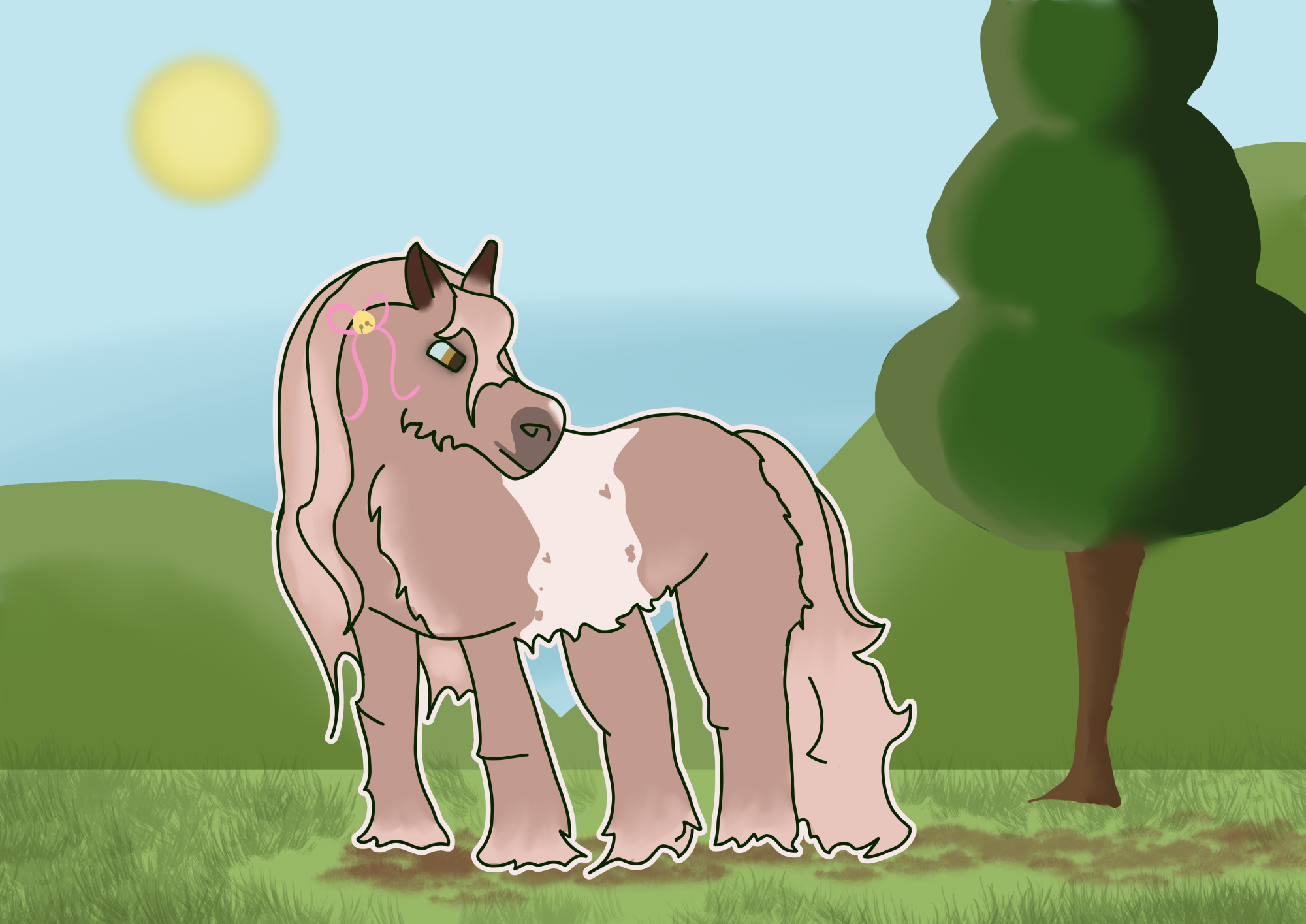 When Frank noticed her excitement, he chuckled. There was an amused, almost teasing smirk on his face as he turned on his heel to open the trailer. It took a few minutes and lots of help, but they eventually got a the ponies out from the trailer. It was almost immediate how Jessi's eyes snapped to the pretty, caramel-like boy who walked out. He had the most beautiful belt and a bunch of small hearts on his hip. It was almost like he was made just for Valentine's day!