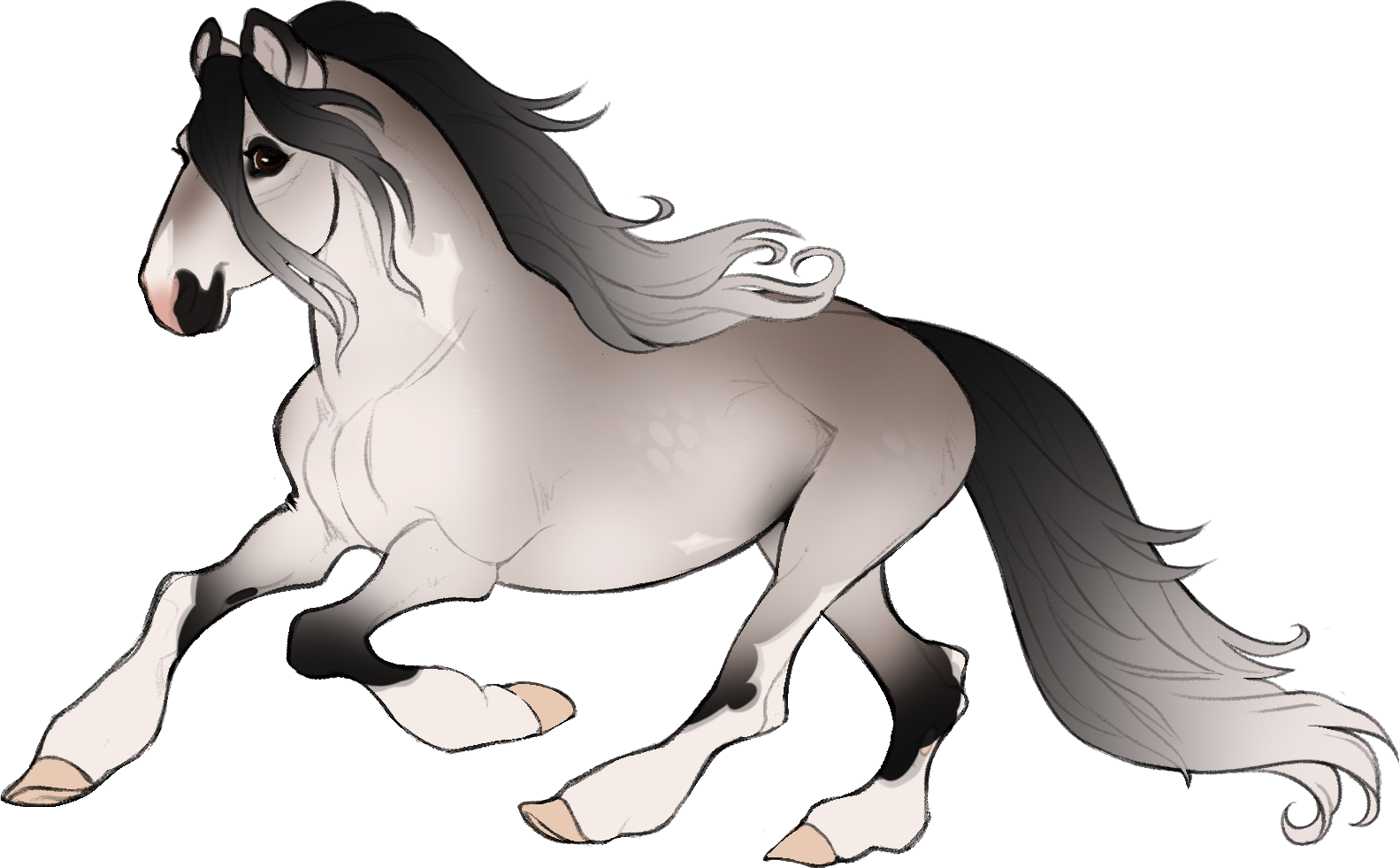 Teddy-Eared Grey on Bay Roan Tobiano Overo