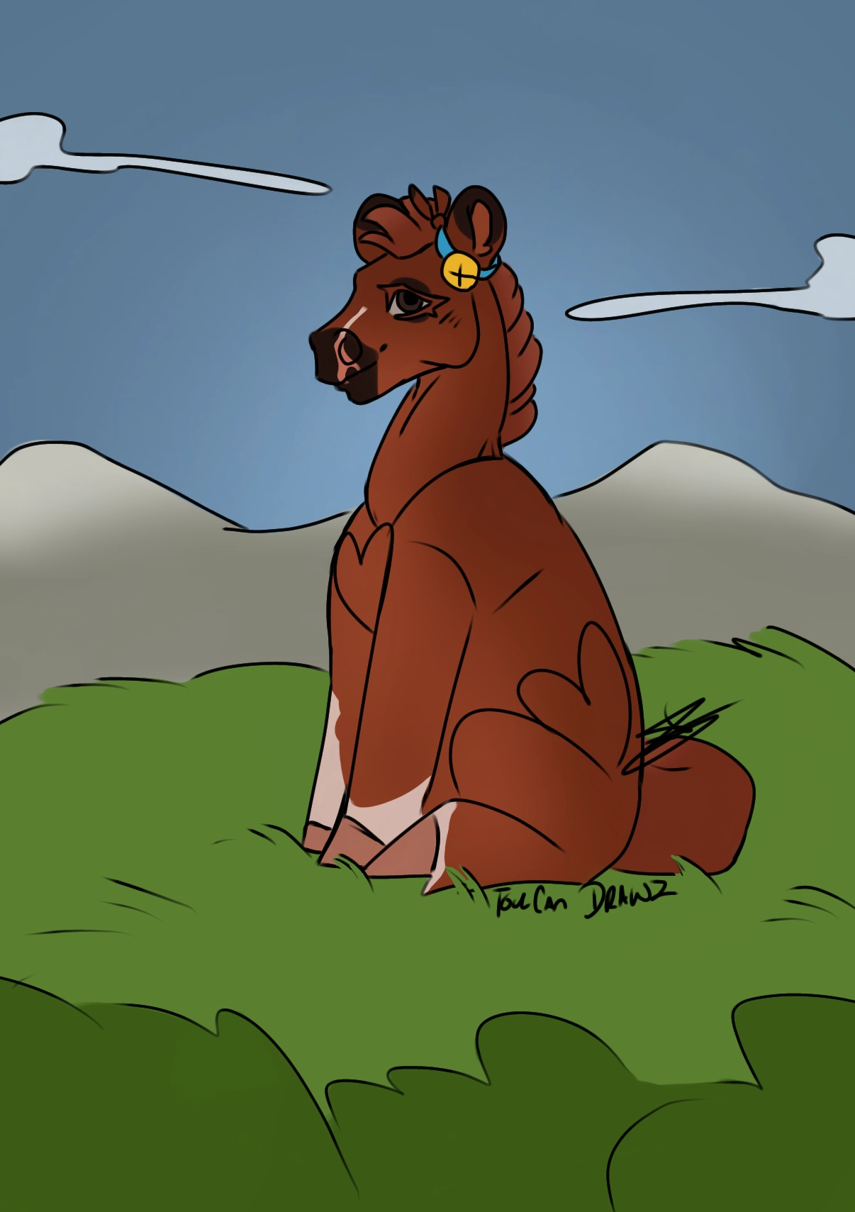 "Gut Mädchen." I mumbled while I sat with her in her stall, her head resting on my lap while I scratched her mane, my other hand softly rubbing her forehead, doing circles. The pony huffing and mumbling while she slept in my lap.