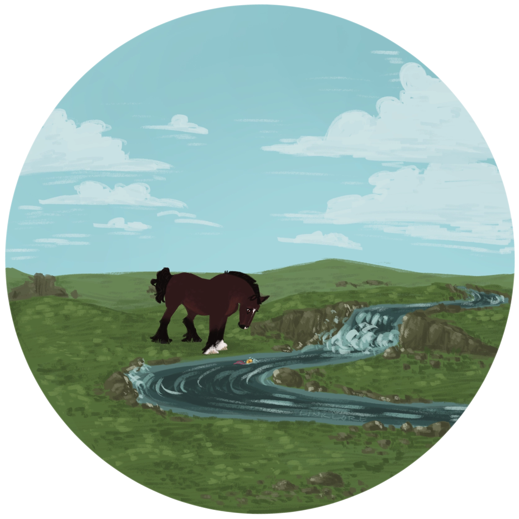 Unfortunately, everything was lost very quickly. The head rider came from around the bushes, too close to avoid, and the impact hit the stallion like a freight train, chest knocking into hindquarters while he tried to regain his footing – but the bell was taken from him, the surprise that caught him so off guard causing him to let go of his ultimate catch. Almost in slow motion, the golden bell flew into the air, thrown directly towards the contingent of enemies, whose horses stepped on it as if it were nothing but more mud. They stomped it into the ground, likely inadvertently, but it was gone nonetheless. A tragic loss in these trying times, now buried in the ground – but he did not have time to mourn. No, he had to continue, as he got his hooves back under him and made straight for the herd again.