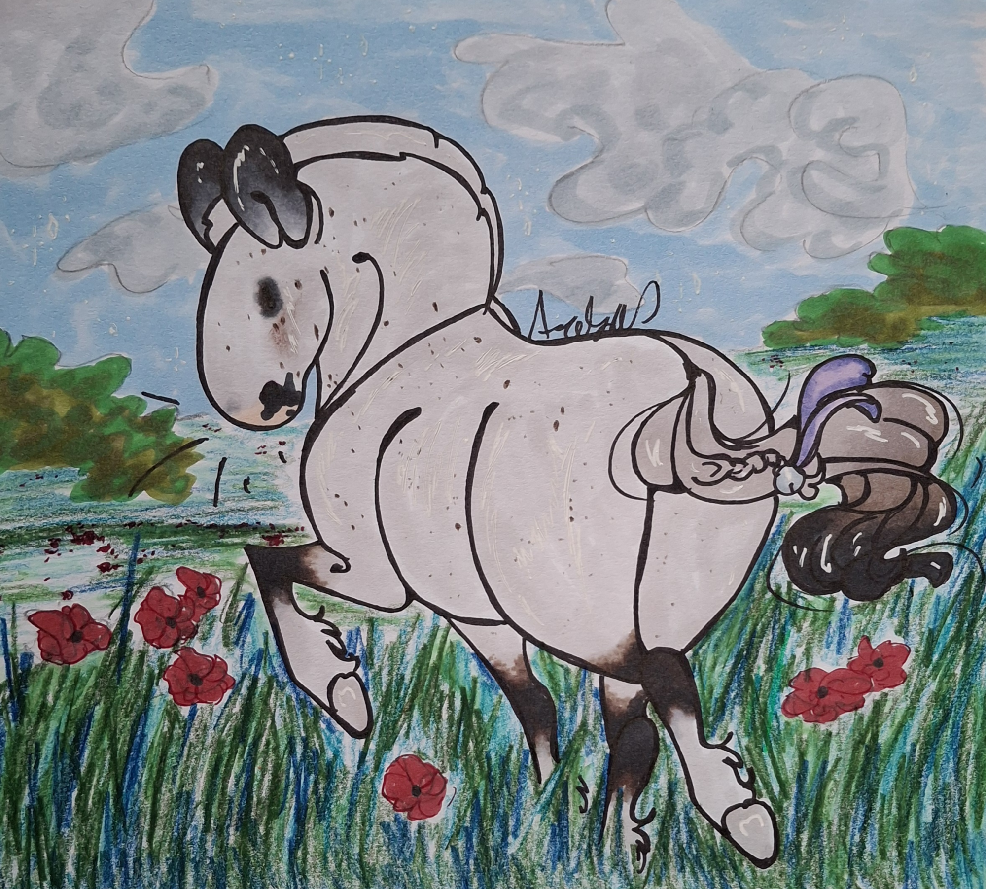 Lavis reached out a hand, Poppy Seed was so close he could almost bump it now. He sniffed some more, swished his tail. As a pony, he had no real expectations of what people were supposed to be like, other than slightly distant creatures that shambled about on two legs. But somehow, he could have sworn they would be taller. This meant he and his visitor were on eye level and it was a curious feeling to be seen by her.